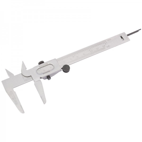 General purpose calipers with thumb wheel fine adjustment. Can be used for internal, external and depth measurements. Graduations shown in metric (cm/mm) and imperial inch marks. Display packed.