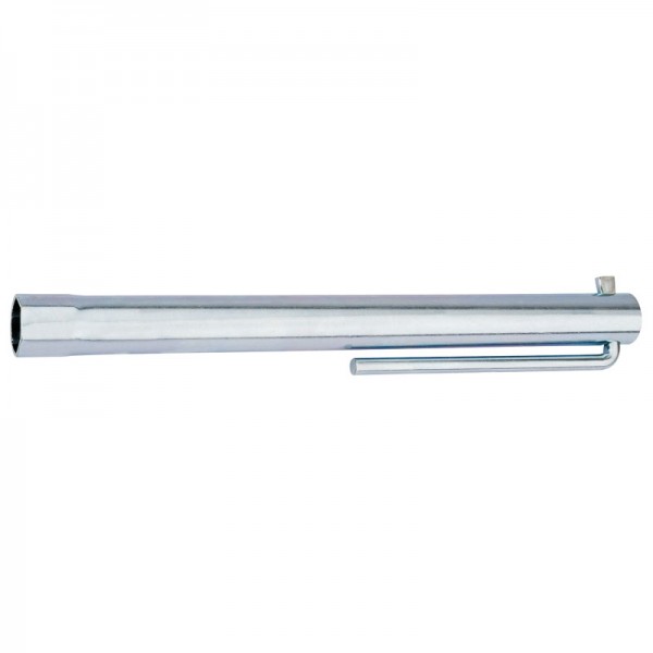 A tubular carbon steel zinc plated wrench, designed for use with spark plugs which are deep set into engine blocks. Socket end has rubber insert for spark plug insulator protection and retention. Supplied with integral tommy bar. Display packed.
