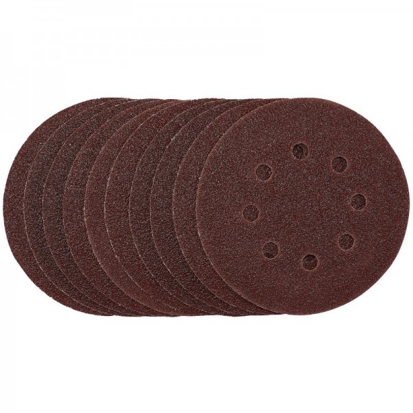 Sanding Discs, 125mm, Hook & Loop, 40 Grit, (Pack of 10)
