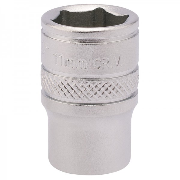 Expert Quality, 6 point socket manufactured from chrome vanadium steel hardened and tempered with a micro satin finish. Each socket has a knurled ring for extra grip.