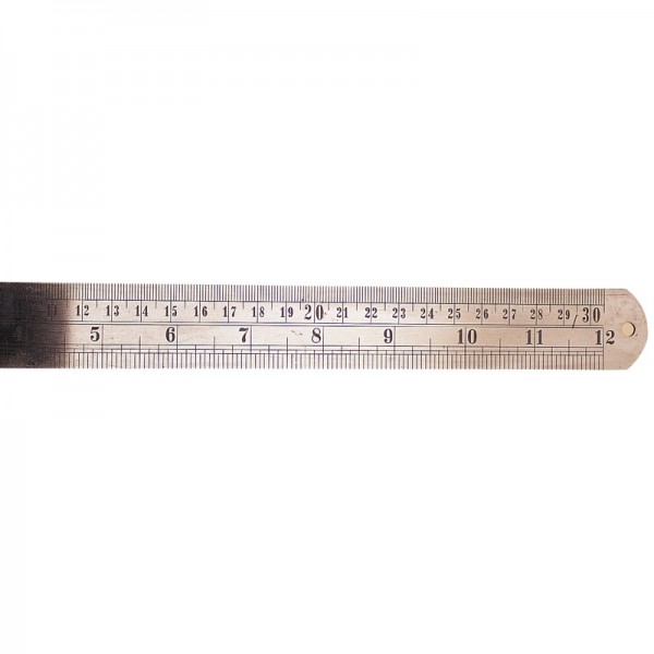 Double sided with hang hole. Permanently etched graduations of cm/mm and inches, 1/8”, 1/16”, 1/32” and 1/64”. Display packed.