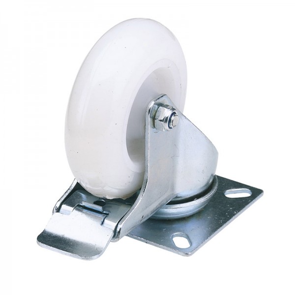 Swivel Plate Fixing Nylon Wheel with Brake, 100mm Diameter, S.W.L. 125kg