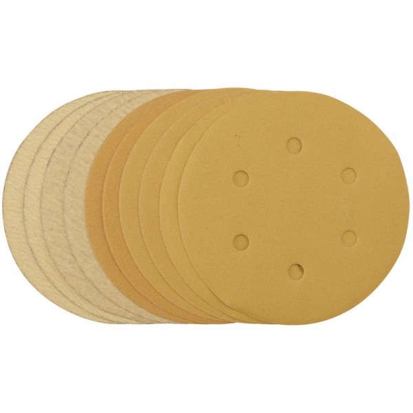 Gold Sanding Discs with Hook & Loop, 150mm, Assorted Grit - 120G, 180G, 240G, 320G, 400G (Pack of 10)