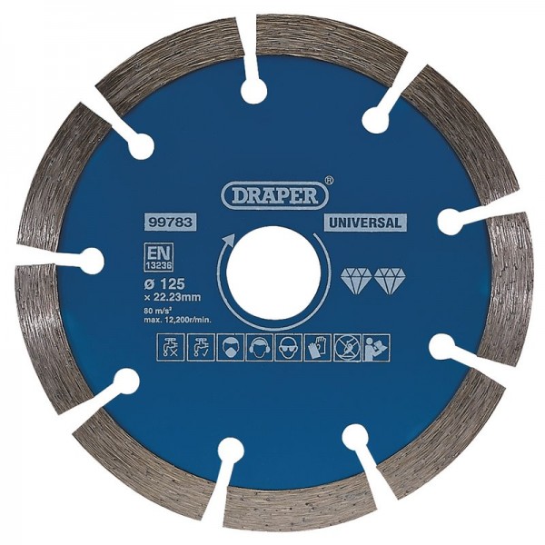 Hardened and tempered diamond blade with segmented rim for a faster cut. General purpose blade for use on concrete, bricks, stone, granite and marble. Suitable for dry and wet cutting, with optimum results when used wet. Compatible with most angle grinders with a 22.23mm bore.