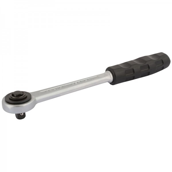 Professional Quality, manufactured from chrome vanadium steel hardened, tempered and chrome plated for corrosion protection. Push through pattern for forward/reverse action. Spring-loaded ball bearing for secure socket holding. Sold loose.