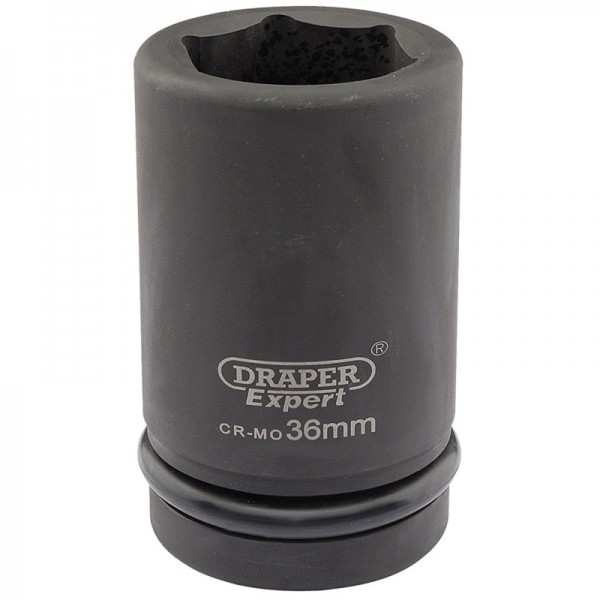 Expert Quality, 6 point sockets forged from chrome molybdenum hardened, tempered and chemically blacked for corrosion protection. Supplied with pin and ring. These sockets are for use with air, electric or manual impact wrenches. Packed in polythene bag with barcode.