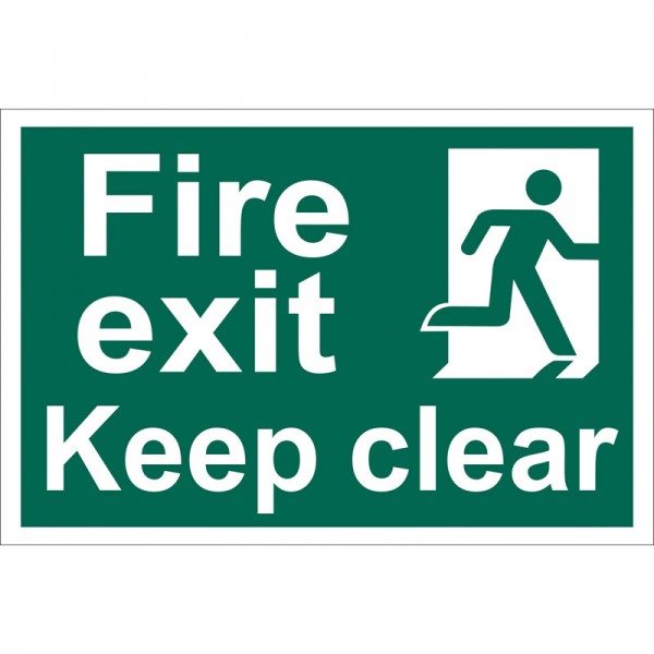 Fire Exit Keep Clear’ Safety Sign, 300 x 200mm, Design 1