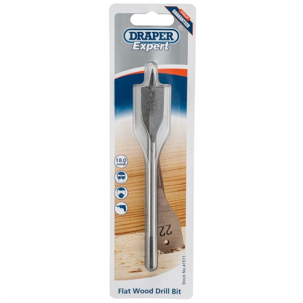 Flat wood drill bits manufactured from hardened and tempered carbon steel. Display packed.