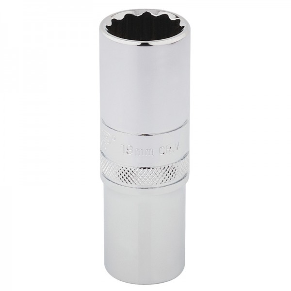 Expert Quality, 12 point deep socket manufactured from chrome vanadium steel that’s hardened and tempered with a polished finish. Each socket has a knurled ring for extra grip.