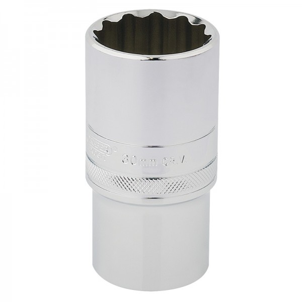 Expert Quality, 12 point deep socket manufactured from chrome vanadium steel that’s hardened and tempered with a polished finish. Each socket has a knurled ring for extra grip.