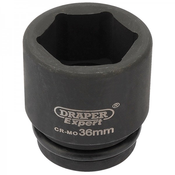 Expert Quality, 6 point sockets forged from chrome molybdenum hardened, tempered and chemically blacked for corrosion protection. Supplied with pin and ring. These sockets are for use with air, electric or manual impact wrenches. Packed in polythene bag with barcode.