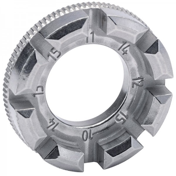 This universal spoke key is designed to tighten and loosen bicycle wheel spokes. Made from chrome-molybdenum steel and designed with wide driving faces to minimise damage to spoke nipples.