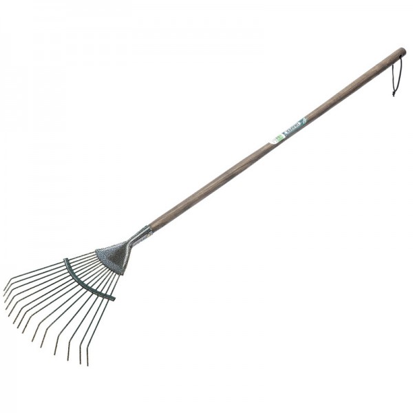 Carbon steel lawn rake designed for the young gardening enthusiast, correctly hardened and tempered with lacquered ash handle and wrist strap. Sold loose.