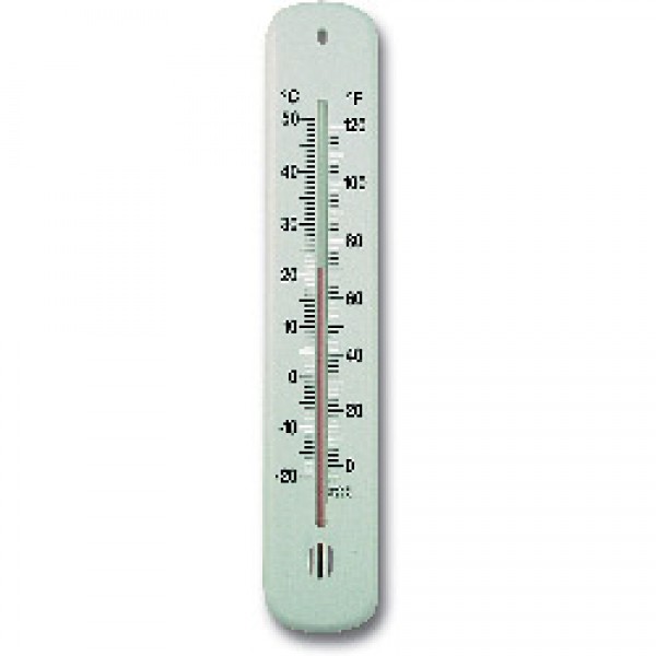 215mm plastic wall thermometer with black printed temperature scale on white moulding. Suitable for indoor and outdoor use, this thermometer is ideal for use in the home or the garden